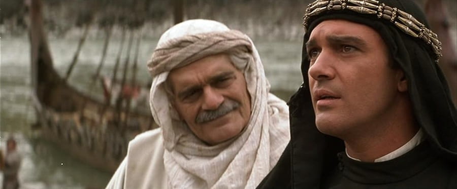 Banderas plays the central character, Ahmed Ibn Fahdlan, known to his Viking cohorts as “the Arab” and “Ibn.” The film also stars Scandinavian actors Dennis Storhoi and Vladimir Kulich, with Diane Venora as the queen – one of the very few female characters in the movie – and Tony Curran (Gladiator; League of Extraordinary Gentlemen) as one of the Vikings. The great Omar Sharif (Lawrence of Arabia; Dr Zhivago) appears briefly in the opening scenes as an aide to Banderas’s character.