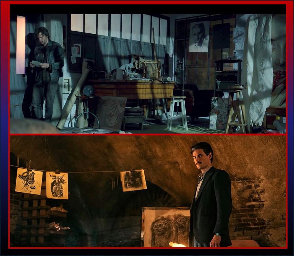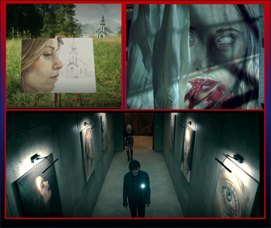 Ok, so we are revved up, expecting blends of art and horror from the SH franchise. In the game, the protagonist is James Sunderland, who was an “average Joe” everyman. In the movie, he is portrayed as a painter! As soon as I learned this from the trail and internet hype, I was excited, since I had hopes of the character being more deep, something like the artist(s) in H. P. Lovecraft’s 1927 “Pickman’s Model” (wherein Richard Upton Pickman painted monstrosities that were more real than his audience knew; the story is fantastic and occasionally adapted to film, such as Guillermo del Toro’s Cabinet of Curiosities Season 1, Ep 5, 2022).